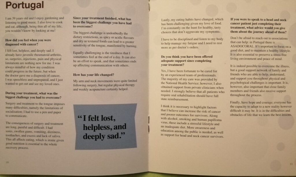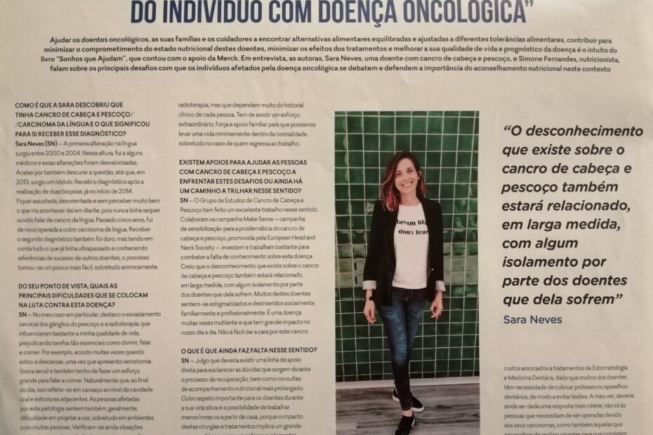- Participação da Sara Neves na brochura “Make Sense Campaign – Survivors’ Stories”, no âmbito do 5.º Semana Europeia de Sensibilização do Cancro de Cabeça e Pescoço, a convite da Associação dos Amigos dos Doentes com Cancro Oral – Asa do Coral.